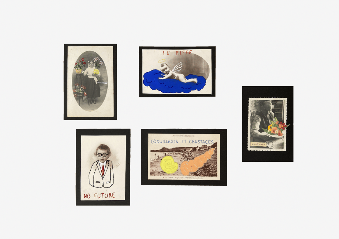Dernières pièces de la série "D'antan" faite de photos anciennes sur lesquelles j'ai cousu et/ou collé et/ou peint.